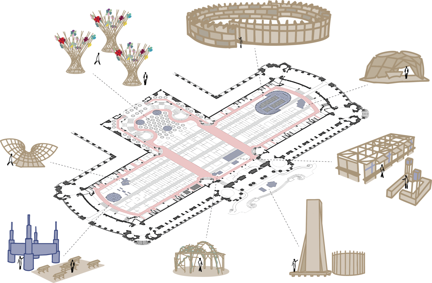 The scenography, entrusted to Karawitz, plays a central role. Already involved in 2025 for the Pan’Auditorium, the agency has designed an updated version of the auditorium this year and is also responsible for the entire scenographic setup, from the ground floor to the R+1 gallery. Structured as a “forest of emergences,” it stages collaborations between stakeholders, organizes visitor flows, and highlights bio-based materials, turning the space into a mediation tool serving climate-related challenges.
